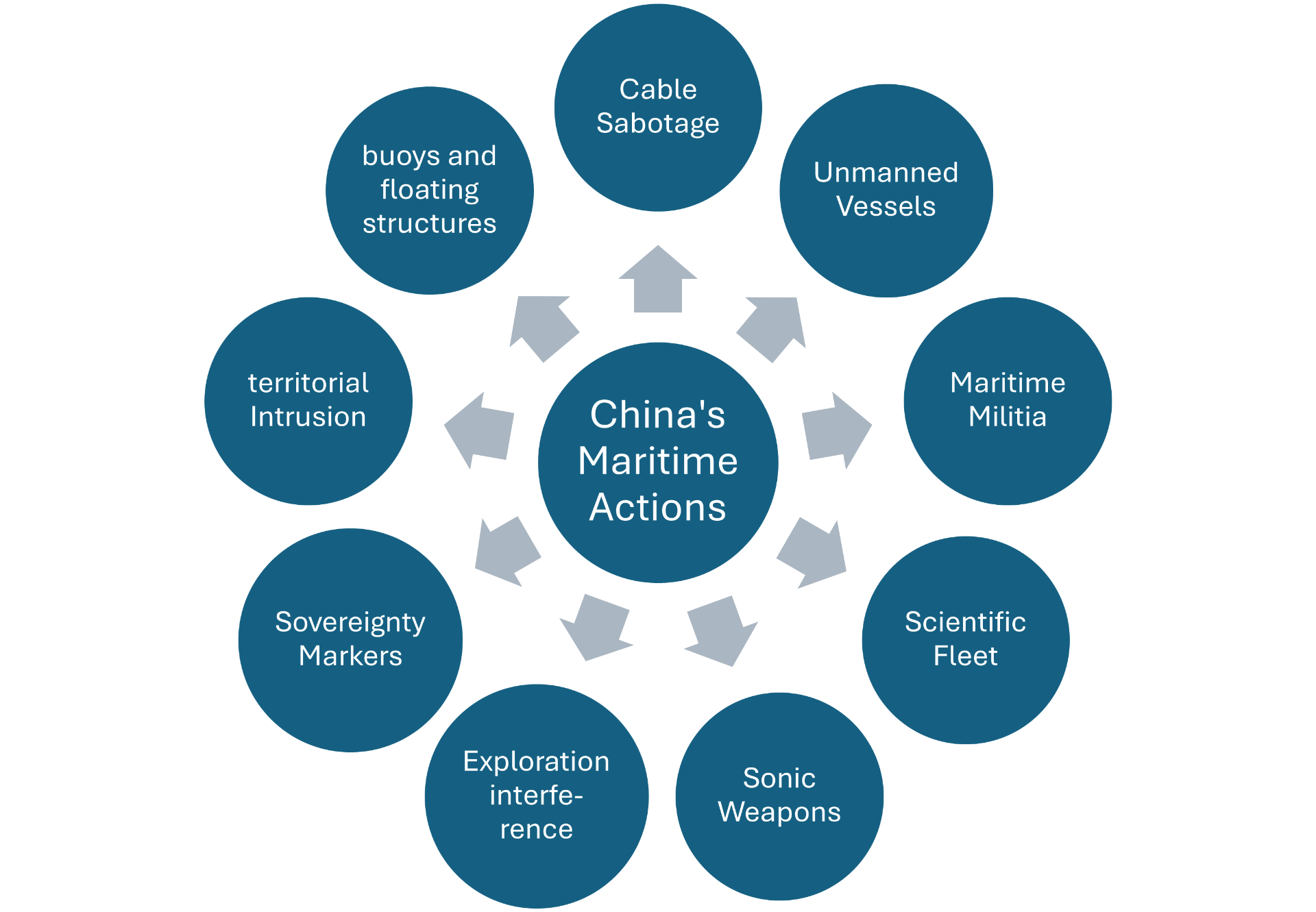 These incidents must be viewed within China's broader maritime strategy. Over the past decade, Beijing has systematically developed a comprehensive portfolio of coercive tactics at sea, almost systematically in other countries' EEZ, including: